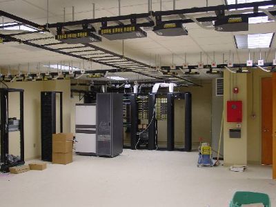 As part of managing a company move, we project managed the build-out of 55,000 sq. ft. of office space including a Data Center containing ~50 racks of equipment. To conserve space, our design skipped the typical raised floor and went with all overhead cabling, power, and HVAC. The Client's business is hosting online trading communities and their environment included Tandem, i-Series, Windows, Linux, and Sun. Dynamic requirements for their Customers often drove application changes and system reconfigurations. In support of how IT managed their environment, we customized the cabling by installing patch panels underneath the overhead ladder rack. Top of rack switches were easily patched in to the "floating" patch panels and maximized flexibility for future reconfiguration of Data Center layout. Power for racks was also supplied off the ladder racks into Zero-U PDU's.